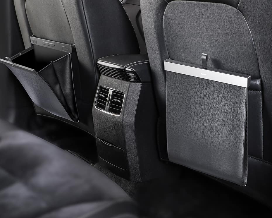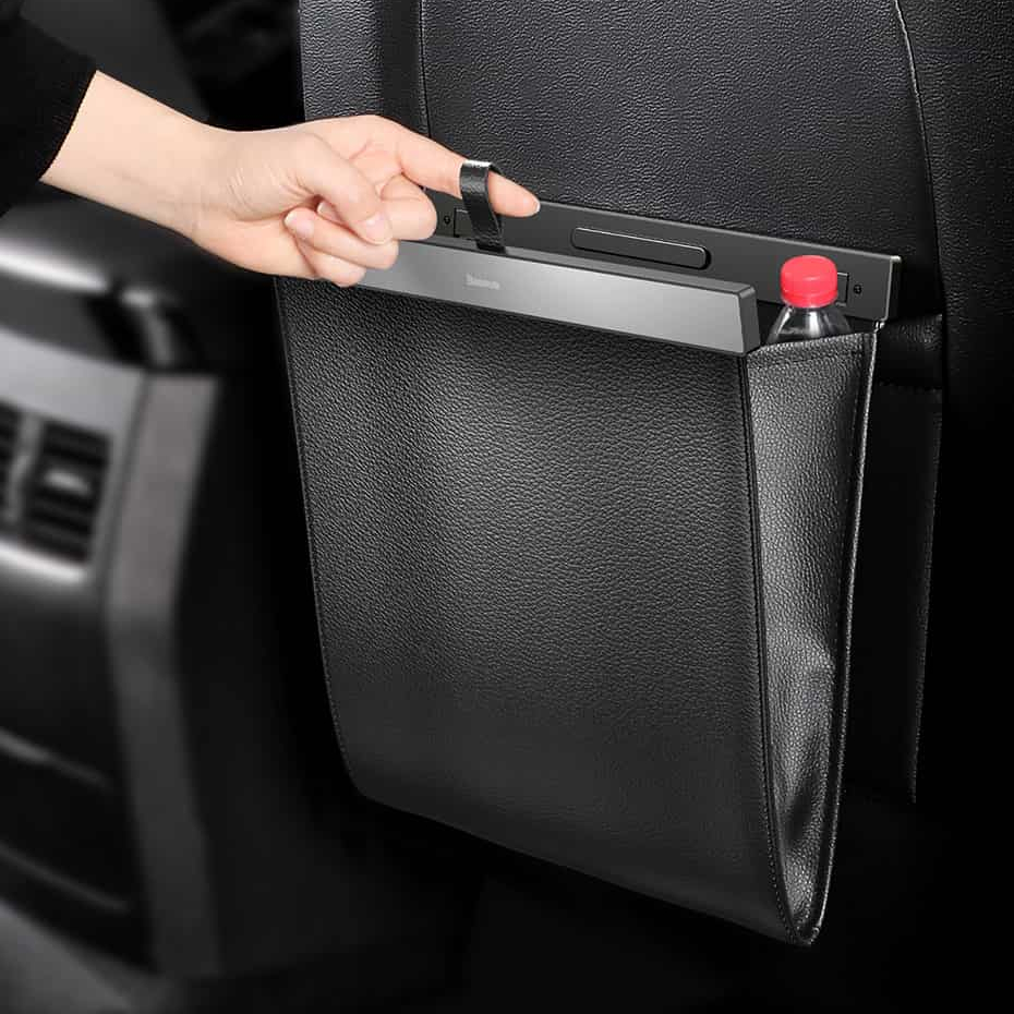 The pocket takes up very little space, so it does not disturb any of the passengers while driving. It is made of high-quality materials, such as synthetic leather and durable metal. It will surely fit into the interior of your car.