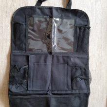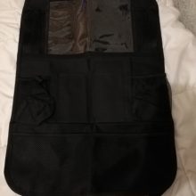 Really good organizer, arrived on time and well packaged. It us really easy to attach to the seat. Made out of good quality material that is easily wipeable with a dump cloth. I really lije tge plastic pocket that can hold my iPpad in it and i can play movies to my baby while driving. Would recommend this